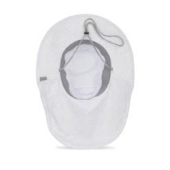 Das Material besteht aus einem leichten und atmungsaktiven Gewebe, das Feuchtigkeit ableitet und für angenehme Belüftung sorgt. Der Hut verfügt über eine breite Krempe, die vor Sonne und Regen schützt und ein angenehmes Schatten spendet.