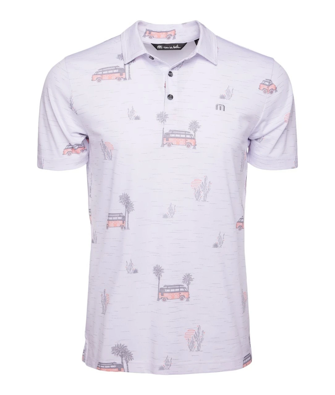 Das Design des Travis Mathew Four Wheeleing Polos ist modern und sportlich. Es verfügt über einen klassischen Kragen und eine dreiknopfleiste für einen eleganten Look. Das Poloshirt ist in verschiedenen Farben erhältlich, so dass Sie Ihren individuellen Stil auf dem Golfplatz zeigen können.